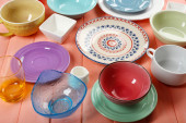 Zdjęcie "Różne naczynia na drewnianym stole z bliska" może być wykorzystywane do celów osobistych i komercyjnych zgodnie z warunkami zakupionej licencji Royalty-free. Obraz jest dostępny do pobrania w jakości wysokiej rozdzielczości do 5760x3840.