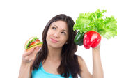 młoda kobieta trzymając torbę na zakupy z warzywa artykuły spożywcze