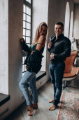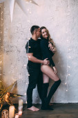 młoda piękna para w miłości flirt w domu i noszenie elegancki czerwony strój