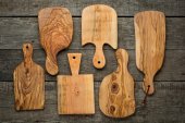 Drewna, deski do krojenia na rustykalne drewniane tła