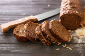 Zdjęcie "Krojonego chleba czarny na drewniane deski." może być wykorzystywane do celów osobistych i komercyjnych zgodnie z warunkami zakupionej licencji Royalty-free. Obraz jest dostępny do pobrania w jakości wysokiej rozdzielczości do 5760x3840.