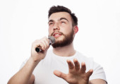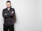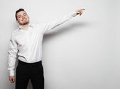biznes człowiek punktów palcami po prawej stronie