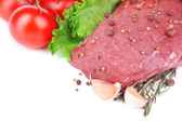 Surowe mięso i warzywa na deska na białym tle na Zielone Świątki?