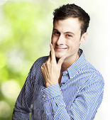 zbliżenie portret szczęśliwy młody człowiek z papierosem