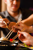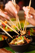 Zdjęcie "Młodzi ludzie jedzenie w restauracji tajskiej" może być wykorzystywane do celów osobistych i komercyjnych zgodnie z warunkami zakupionej licencji Royalty-free. Obraz jest dostępny do pobrania w jakości wysokiej rozdzielczości do 5760x3840.