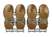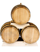 Drewniane beczki dla napojów alkoholowych o piwo, wino, rum, whisky czas na białym tle na białym tle z cieniami.