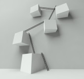 Grupa bloków biały z dużą ilością drabiny na ścianie
