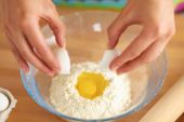 Kobieta piecze ciasta w kuchni.