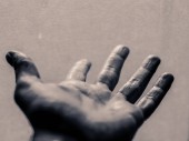 Kreatywny proces ręka trzymając pognieciony papier studio fotografia ciemne tło zbliżenie innowacji