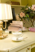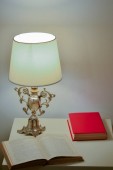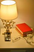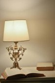 stare lampy-ropy naftowej i książkę w stosunku do okna