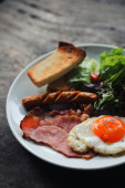 Zdjęcie "Śniadanie z boczek, jajko sadzone i chleb" może być wykorzystywane do celów osobistych i komercyjnych zgodnie z warunkami zakupionej licencji Royalty-free. Obraz jest dostępny do pobrania w jakości wysokiej rozdzielczości do 5760x3840.