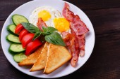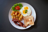 Zdjęcie "Śniadanie z boczek, jajko sadzone i chleb" może być wykorzystywane do celów osobistych i komercyjnych zgodnie z warunkami zakupionej licencji Royalty-free. Obraz jest dostępny do pobrania w jakości wysokiej rozdzielczości do 5760x3840.