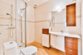Zdjęcie "Wnętrze łazienki z jacuzzi i prysznicem" może być wykorzystywane do celów osobistych i komercyjnych zgodnie z warunkami zakupionej licencji Royalty-free. Obraz jest dostępny do pobrania w jakości wysokiej rozdzielczości do 5760x3840.