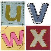 Grupa drewniane litery U V W X oprawione, na białym tle na biały