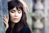 portret z bliska młode piękne kobiety, na zielonym tle