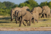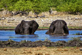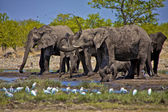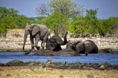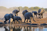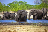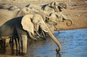 A group of elephants drinking water at etosha national park namibia