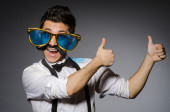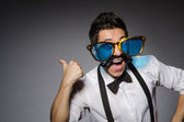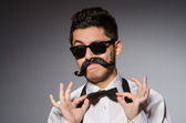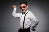 Młody człowiek kaukaski sobie okulary przeciw szary