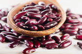 czerwona fasola w drewnianej łyżeczce