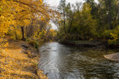 jesienny krajobraz z drzewami i rzeką