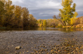jesienny krajobraz z drzewami i rzeką