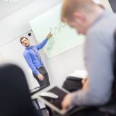 Prezentacja biznesowa na spotkaniu korporacyjnym.