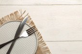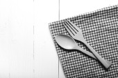 drewna łyżka i widelec na ręcznik kuchenny