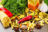 Zdjęcie "Powyżej strzał Spaghetti niegotowane i składniki na sos" może być wykorzystywane do celów osobistych i komercyjnych zgodnie z warunkami zakupionej licencji Royalty-free. Obraz jest dostępny do pobrania w jakości wysokiej rozdzielczości do 5760x3840.