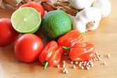 Powyżej strzał Spaghetti niegotowane i składniki na sos