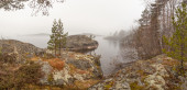 Zdjęcie "Mgła na kamienistym wybrzeżu jeziora. pejzaż wiosna" może być wykorzystywane do celów osobistych i komercyjnych zgodnie z warunkami zakupionej licencji Royalty-free. Obraz jest dostępny do pobrania w jakości wysokiej rozdzielczości do 5760x3840.