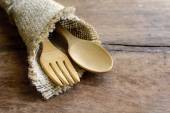 drewna łyżka i widelec na ręcznik kuchenny