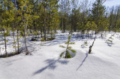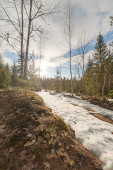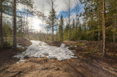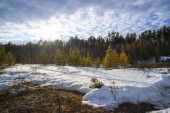Zdjęcie "Rozmrożone patche w drewno wiosna wieczorem energii słonecznej. Krajobraz" może być wykorzystywane do celów osobistych i komercyjnych zgodnie z warunkami zakupionej licencji Royalty-free. Obraz jest dostępny do pobrania w jakości wysokiej rozdzielczości do 5760x3840.