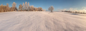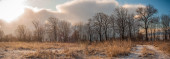 W zimny poranek zamarznięta rzeka mała na wschód