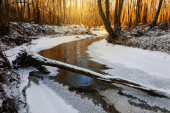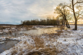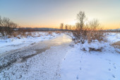 Zdjęcie "W zimny poranek zamarznięta rzeka mała na wschód" może być wykorzystywane do celów osobistych i komercyjnych zgodnie z warunkami zakupionej licencji Royalty-free. Obraz jest dostępny do pobrania w jakości wysokiej rozdzielczości do 5760x3840.