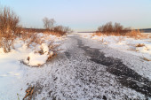 Zdjęcie "W zimny poranek zamarznięta rzeka mała na wschód" może być wykorzystywane do celów osobistych i komercyjnych zgodnie z warunkami zakupionej licencji Royalty-free. Obraz jest dostępny do pobrania w jakości wysokiej rozdzielczości do 5760x3840.