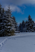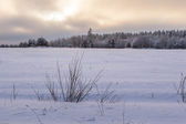 Drzewa na boisko pokryte śniegiem zima.