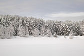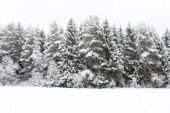 Drzewa na boisko pokryte śniegiem zima.