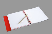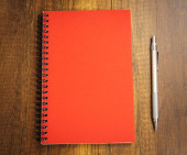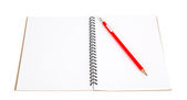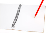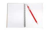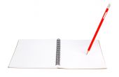 czerwony ołówek na puste notatnik