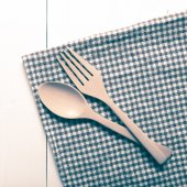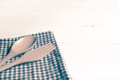 drewna łyżka i widelec na ręcznik kuchenny