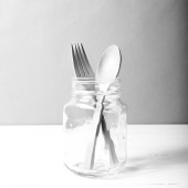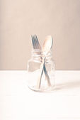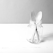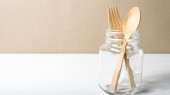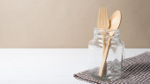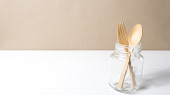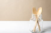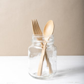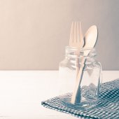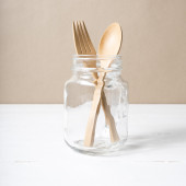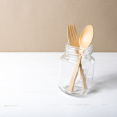 drewniane łyżki i widelca ze szkła