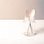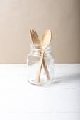 drewna łyżka i widelec stylu czarno-biały kolor szkła