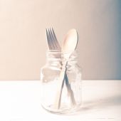 drewna łyżka i widelec stylu czarno-biały kolor szkła