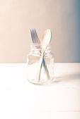 drewna łyżka i widelec stylu czarno-biały kolor szkła