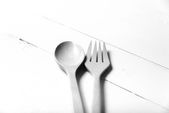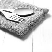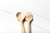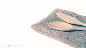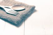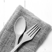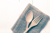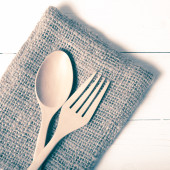 drewna łyżka i widelec na kuchenny ręcznik styl vintage