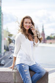 szczęśliwy piękną dziewczyną, rozmowa przez telefon