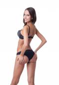 Zdjęcie "Reklama bielizny. Widok z tyłu modelu szczęśliwy" może być wykorzystywane do celów osobistych i komercyjnych zgodnie z warunkami zakupionej licencji Royalty-free. Obraz jest dostępny do pobrania w jakości wysokiej rozdzielczości do 5760x3840.