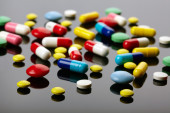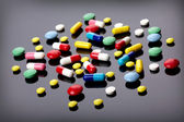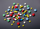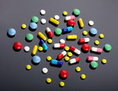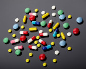 kolorowe pigułki na ciemnym tle