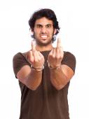 Zdjęcie "szalony młody człowiek z znak nie zgadzam się" może być wykorzystywane do celów osobistych i komercyjnych zgodnie z warunkami zakupionej licencji Royalty-free. Obraz jest dostępny do pobrania w jakości wysokiej rozdzielczości do 5760x3840.