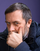 portret starszego mężczyzny z twarzą zamknięte przez ręce