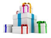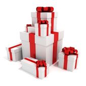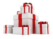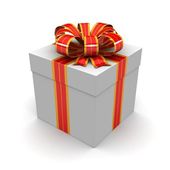 Złoty prezent owinięty z czerwona wstążka satynowa kokarda