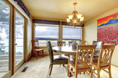 Zdjęcie "Genialny jadalnia z błękitnego ściany okrojona." może być wykorzystywane do celów osobistych i komercyjnych zgodnie z warunkami zakupionej licencji Royalty-free. Obraz jest dostępny do pobrania w jakości wysokiej rozdzielczości do 5760x3840.